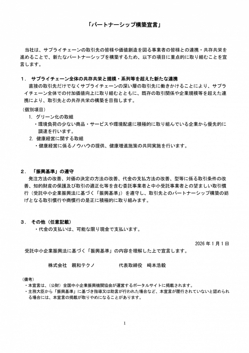 「パートナーシップ構築宣言」を更新いたしました。(令和8年1月6日)
